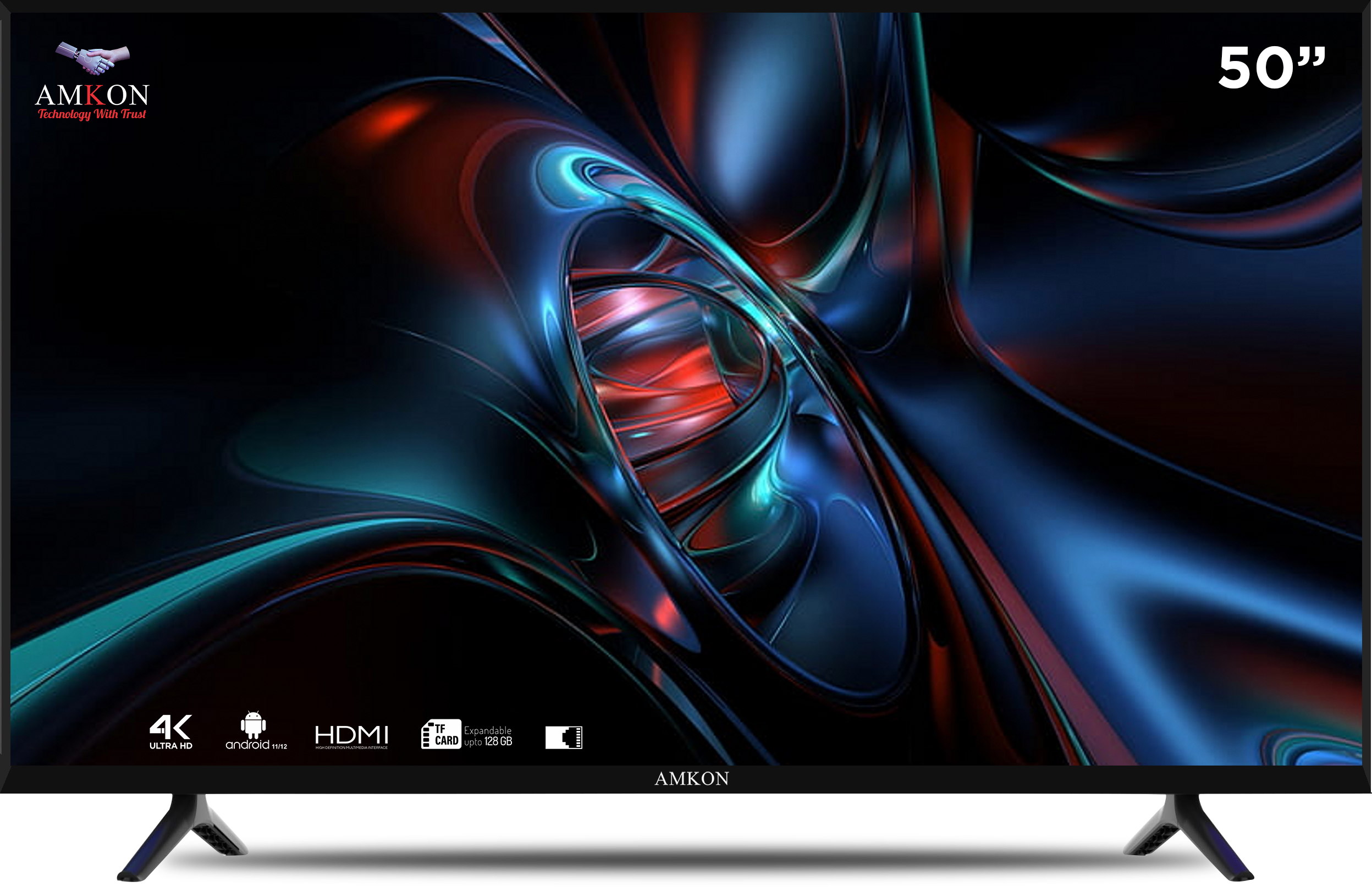 Perfect for large living rooms and entertainment setups, the Amkon 50-inch 4K Ultra HD TV combines cinema-class visuals, superior sound, and stylish design, making it the centerpiece of modern entertainment.